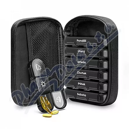 Służy do przejrzystej organizacji i niezawodnego dozowania leków lub suplementów diety w domu i w podróży. Jest oznaczony prostymi symbolami wskazującymi porę dnia. Dostępny w kilku kolorach. Wymiary dozownika 110 x 22 x 20 mm (dł. x szer. x wys.). Výrobce: OBZOR, VYROBNI DRUZSTVO, ZLIN
