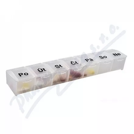 Dozownik tygodniowy służy jako przejrzysty i niezawodny pomocnik w dozowaniu leków. Umożliwia przechowywanie leków lub suplementów diety na nadchodzący tydzień. Výrobce: ING.MILAN HOUŽVA-TERMOPLAST